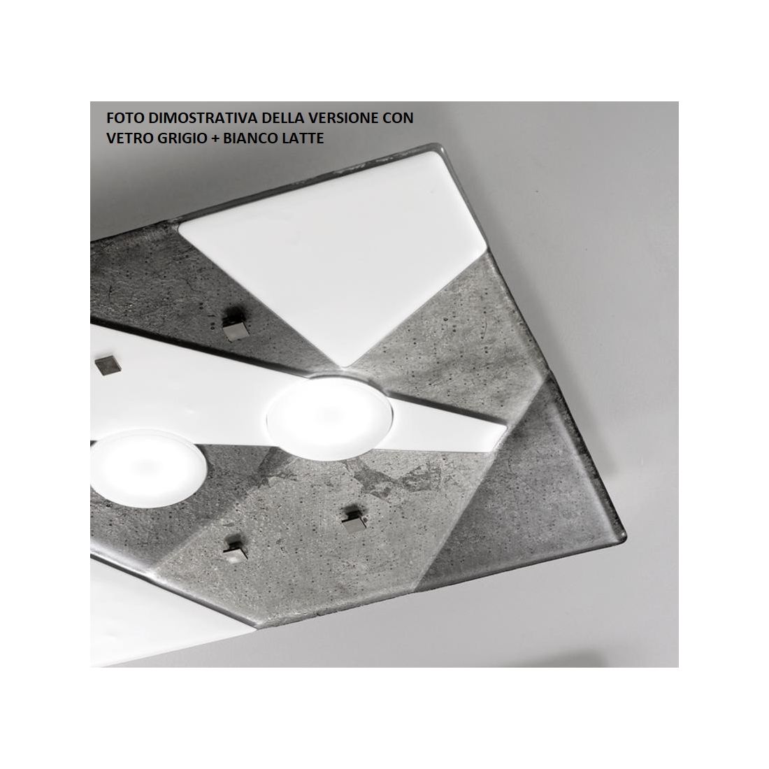 TRIGONO PLAFONIERA 30x30 IN VETRO GRIGIO O AZZURRO MADE IN ITALY LAMPADINA GX53