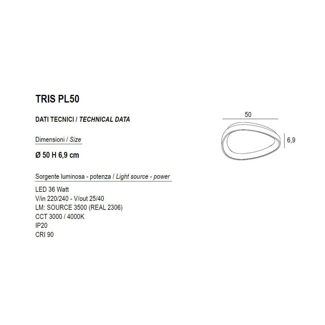 TRIS PLAFONIERA OVALE L35 CM CON LED INTEGRATO 30W LUCE CCT 3000K-4000K IN METALLO 21...