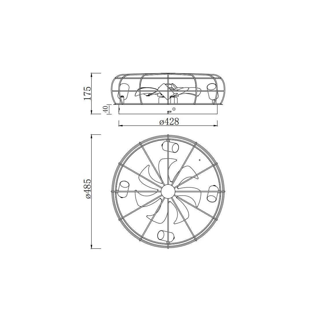 Il diametro della plafoniera è di 48cm con un'altezza di 18cm, è caratterizzata da un design vintage e viene realizzata in metallo a gabbia disponibile nel colore Nero con fondo a vista in Oro invecchiato o in Legno oppure prodotta totalmente nel colore Bianco.