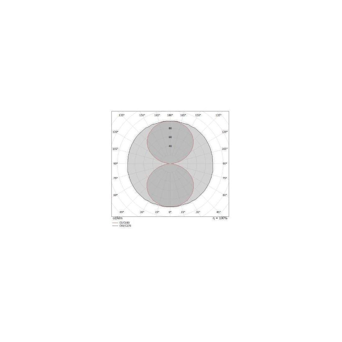 La sorgente luminosa LED da 36w, di colore bianco caldo, con distribuzione luminosa General Lighting, è composta da 128 LED topled, con una CCT 3000 K ed un CRI 80; il flusso luminoso della sorgente è di 4662 lm, con un'efficienza nominale di 129.5 lm/W.