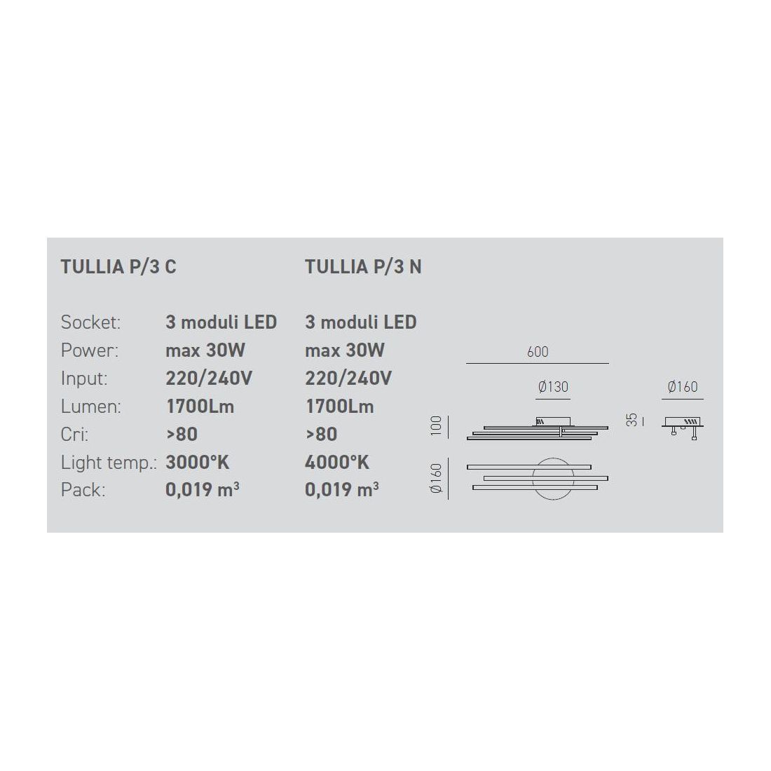 TULLIA P3TULLIA P3 PLAFONIERA APPLIQUE DESIGN MODERNO BIANCA LED 30W LUCE 3000K O 4000K GEA LUCE