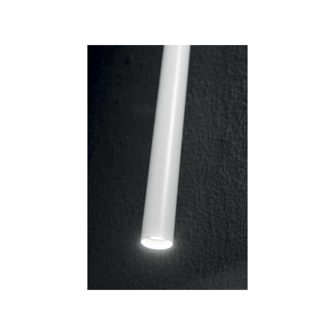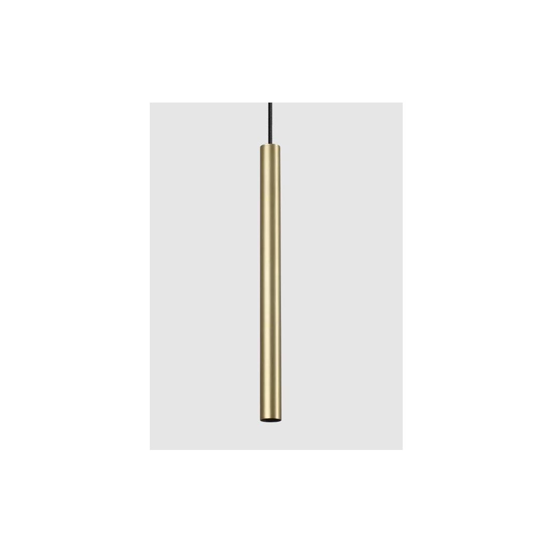 Sospensione singola dal design moderno e originale, di forma sottile, con cilindro alto cm 40, ideale per la cucina o salotto per l'illuminazione di isole, penisole o tavoli da pranzo, con un illuminazione diretta verso il basso, che viene realizzata completamente in metallo disponibile in quattro diverse finiture Bianco, Nero, Ottone.