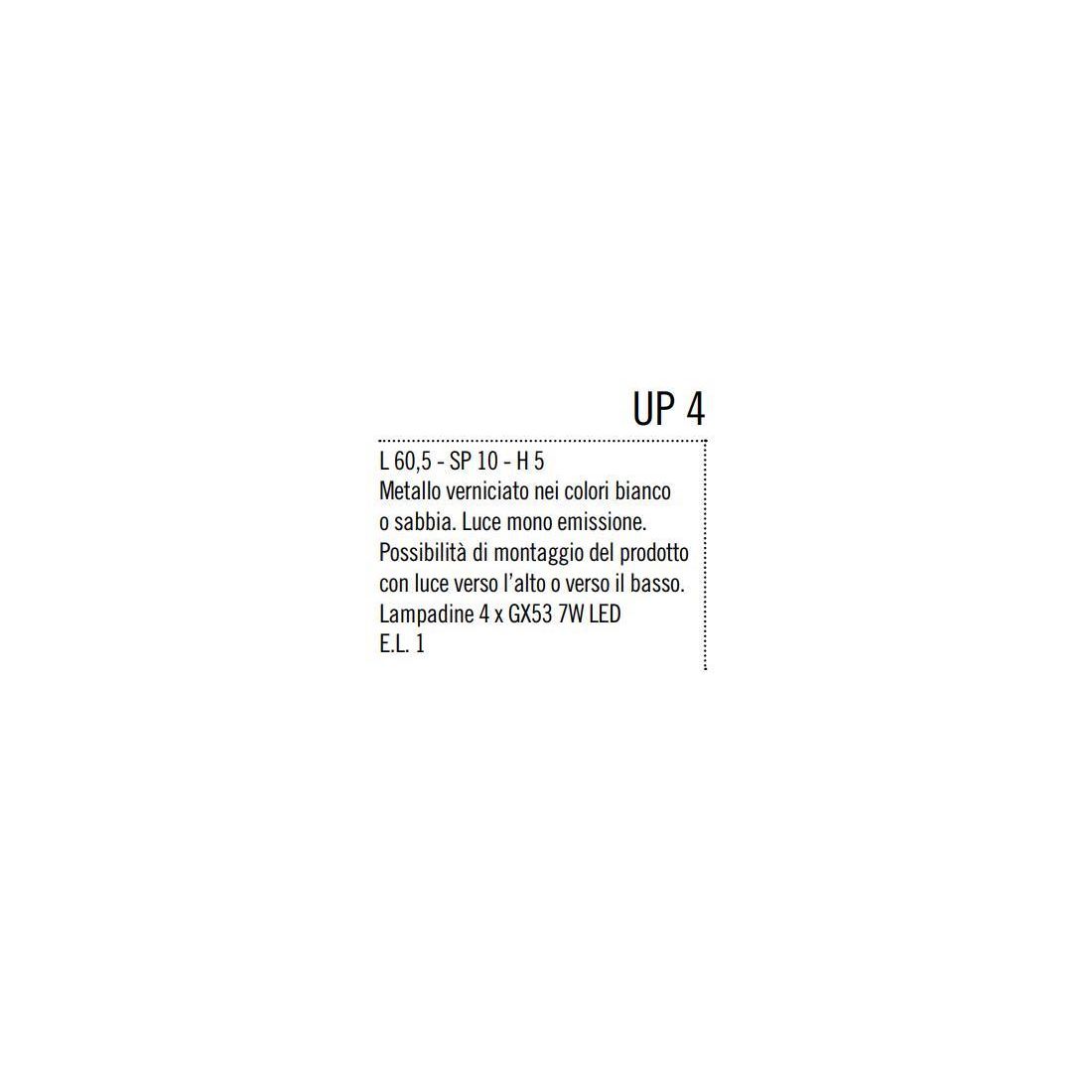 UP DOWN APPLIQUE CM 60 IN METALLO BIANCO, ANTRACITE O SABBIA CON BIEMISSIONE DI LUCE DI...