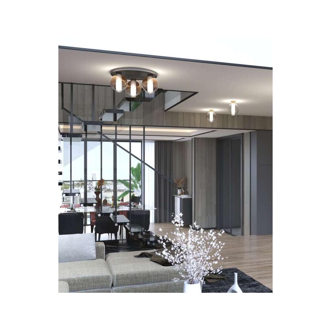 V-LINE PLAFONIERA RETTANGOLARE 3 LUCI NERA O SABBIA CON VETRI COLORATI MODERNA CON...