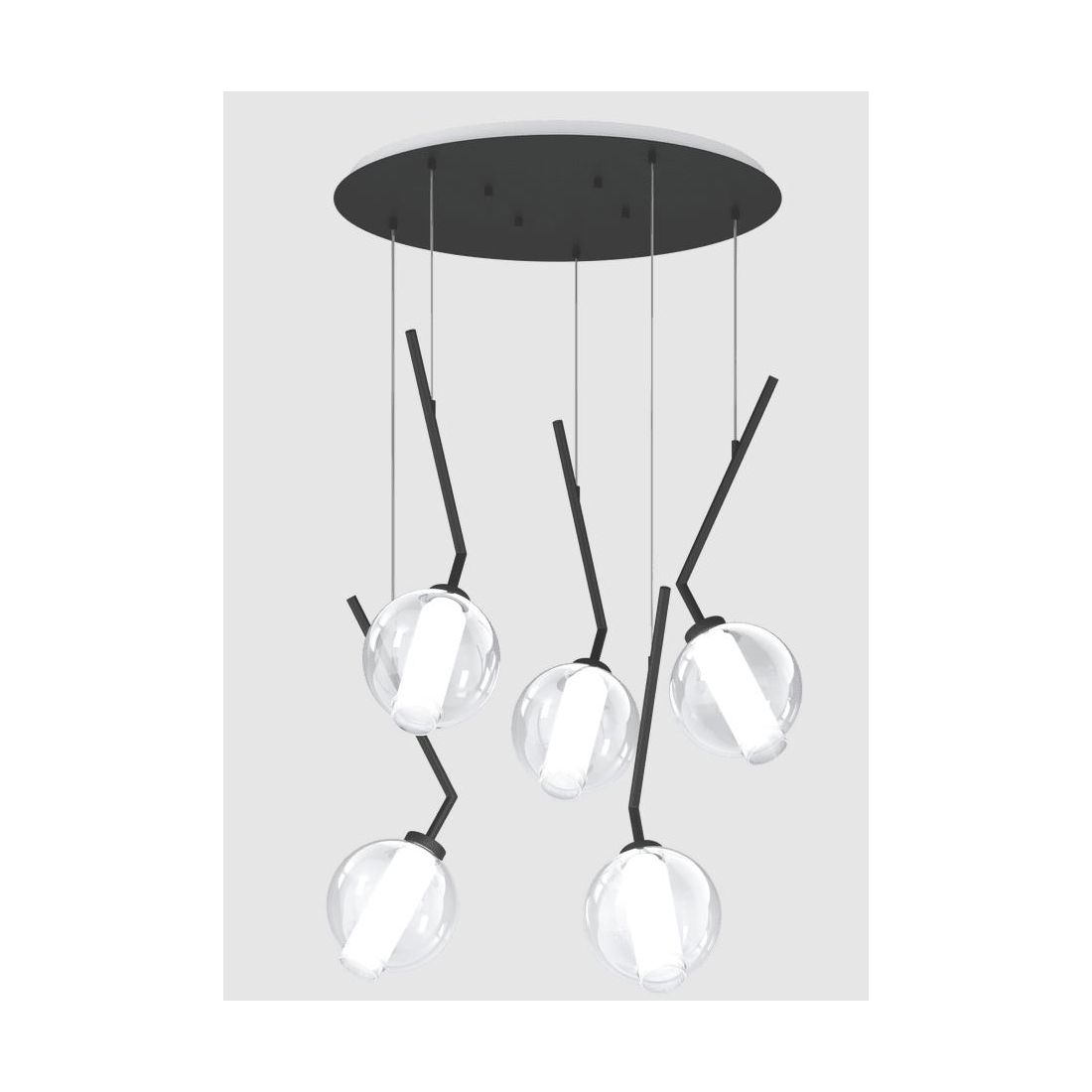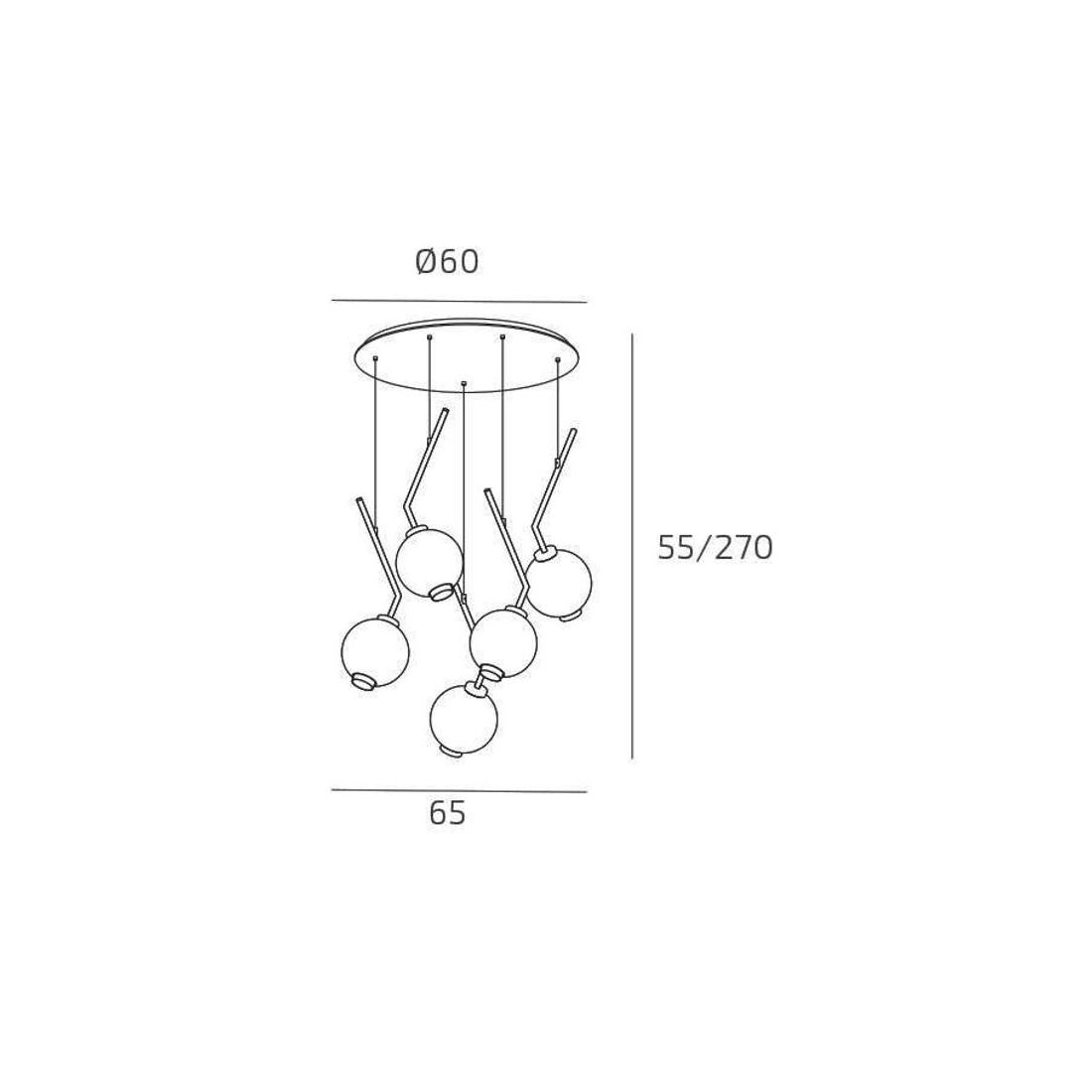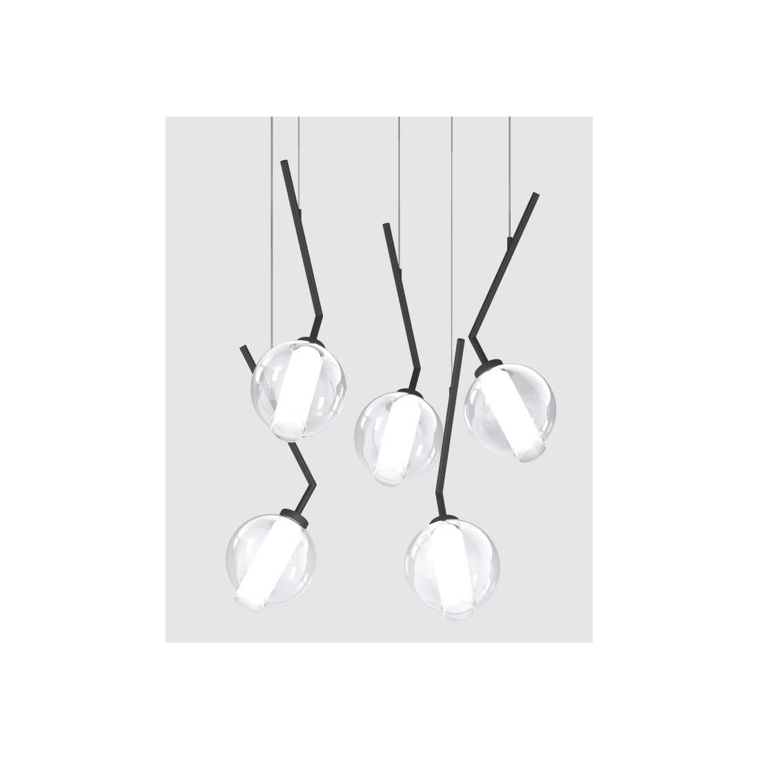 V-LINE SOSPENSIONE 5 LUCI DECENTRATA NERA O SABBIA CON VETRI COLORATI LAMPADINE E27
