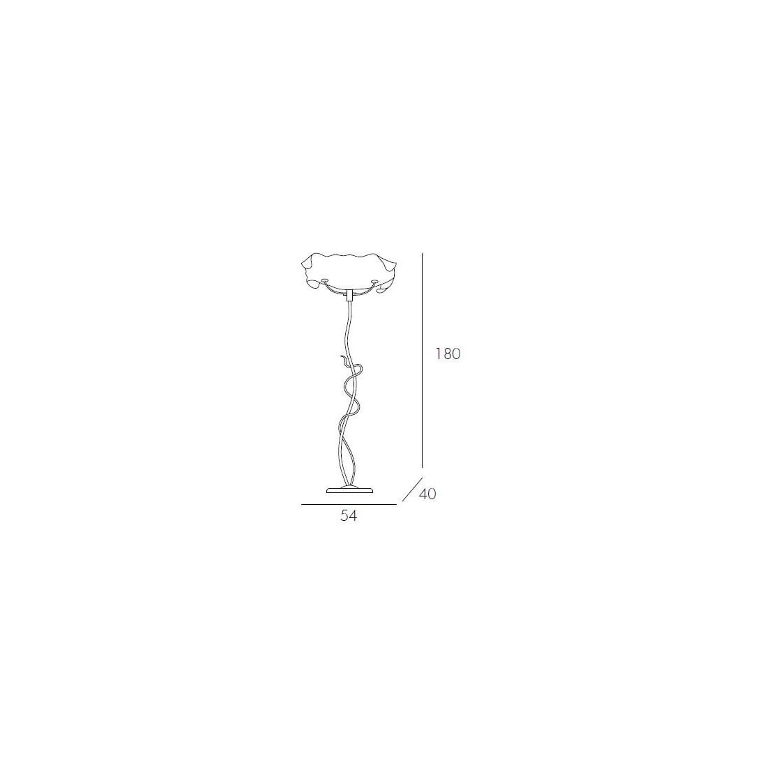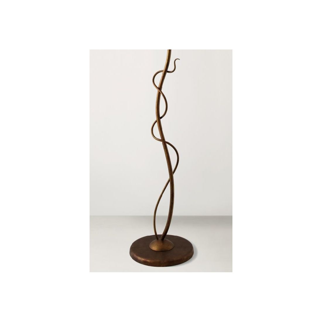 Piantana in metallo verniciato marrone con rifinitura in rame e oro lavorata a mano,con interno in fili di vetro fuso e decoro esterno tamponato bianco e ambra