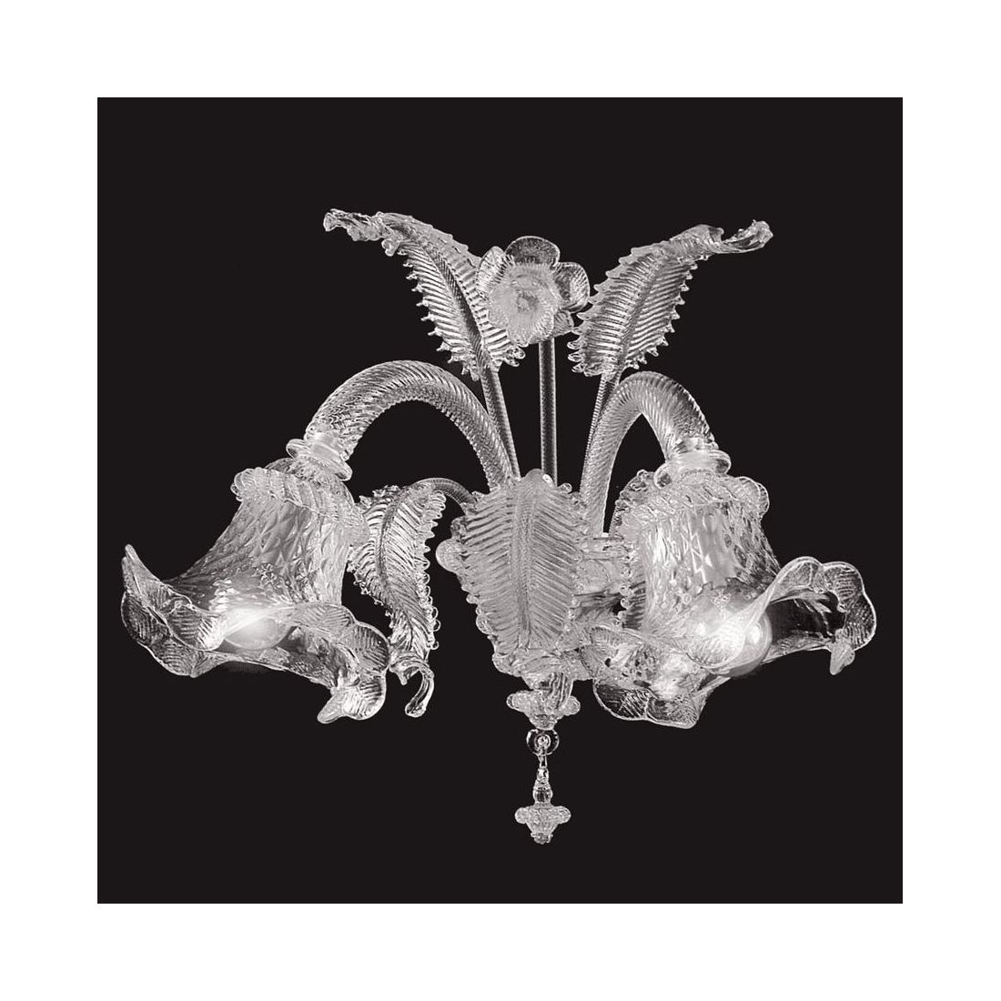 VENEZIA FOGLIE LAMPADARIO 3 LUCI IN VETRO DI MURANO TRASPARENTE O CON FINITURE ORO 24K...