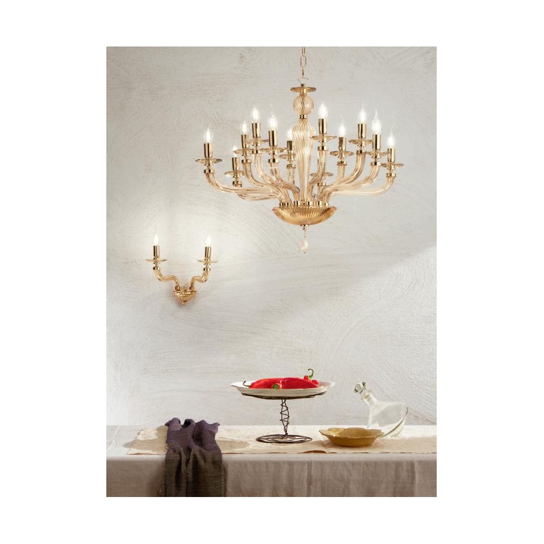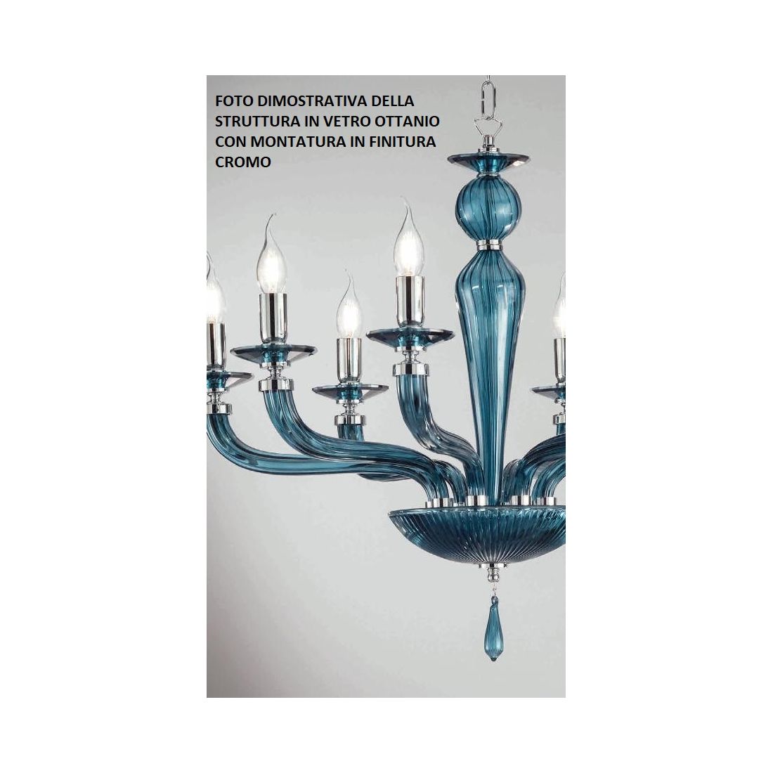 VILLA LAMPADARIO CLASSICO A 12 LUCI IN VETRO LAVORATO A MANO IN 6 COLORI DI ONDALUCE