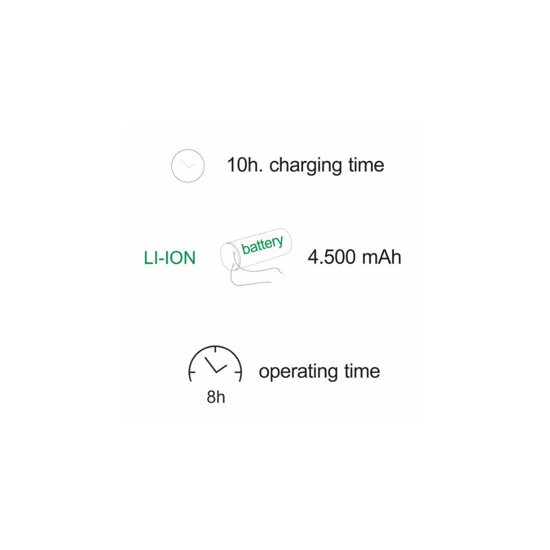 Lampada dotata di pannelli solari, che utilizza quindi l’energia solare per alimentarsi che integra una sorgente luminosa a Led da 3,5 W di potenza con luce bianca calda 3.000K. Ha una batteria interna tipo LI-ION da 4.500 mAh. Per una carica al 100%, è necessario un tempo di ricarica di 10 ore e sarà in grado di funzionare fino ad 8 ore senza interruzione.