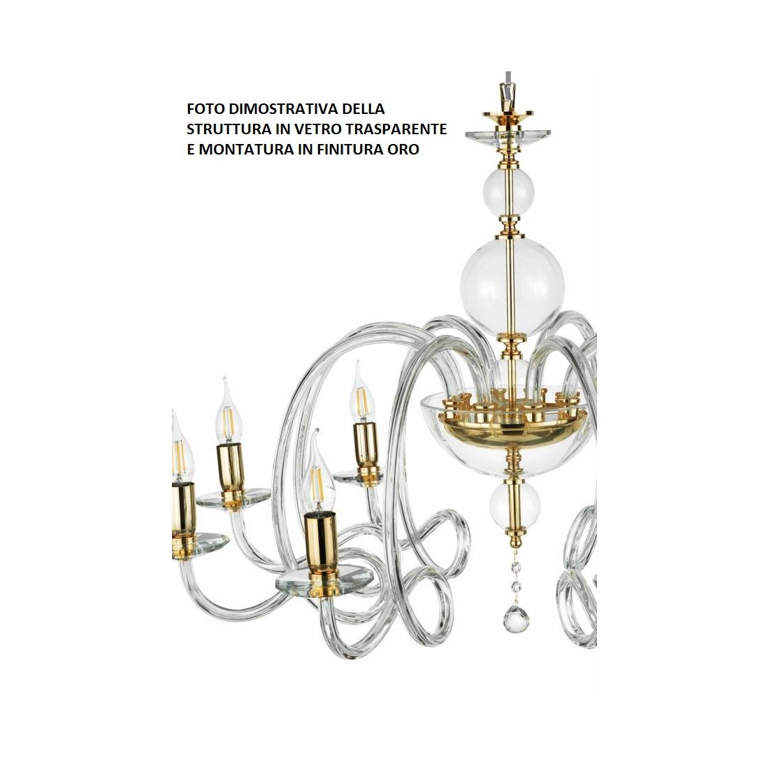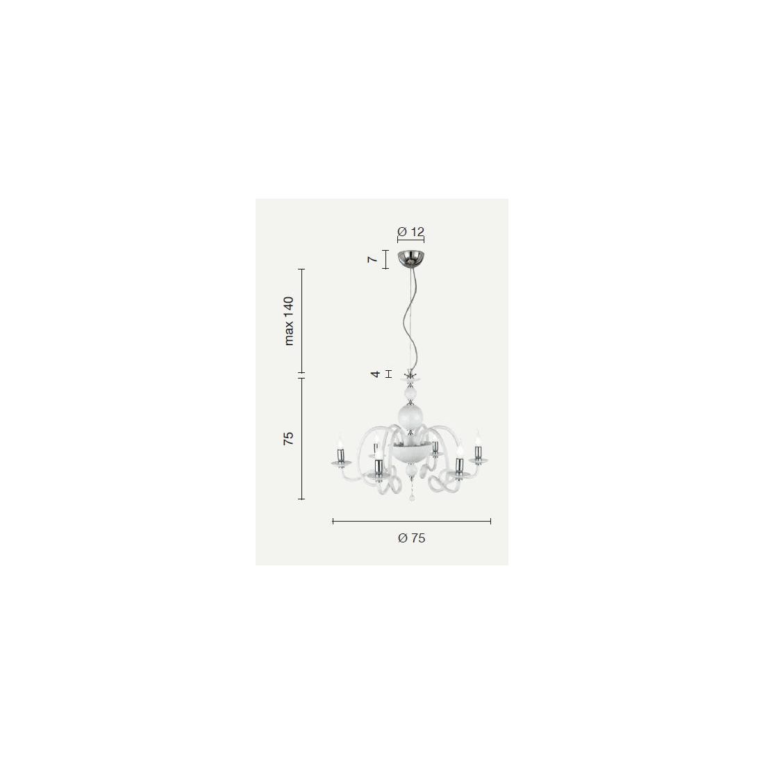 VIVALDI LAMPADARIO A SOSPENSIONE CLASSICO 8 LUCI CON CRISTALLI E VETRO COLORATO 8 COLORI