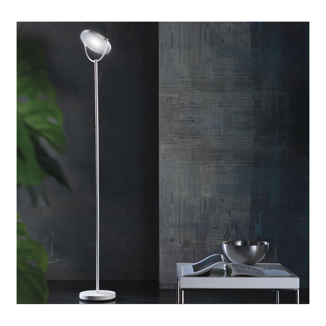 La piantana integra una sorgente luminosa a Led da 30w con resa luminosa di 2950 lumen e con una luce bianca calda 3000k Dimmerabile tramite il pulsante a pedale posto sull' asta; il diffusore orientabile fa si che la luce possa essere regolata e direzionata in diverse direzioni per illuminare specifiche aree o oggetti.