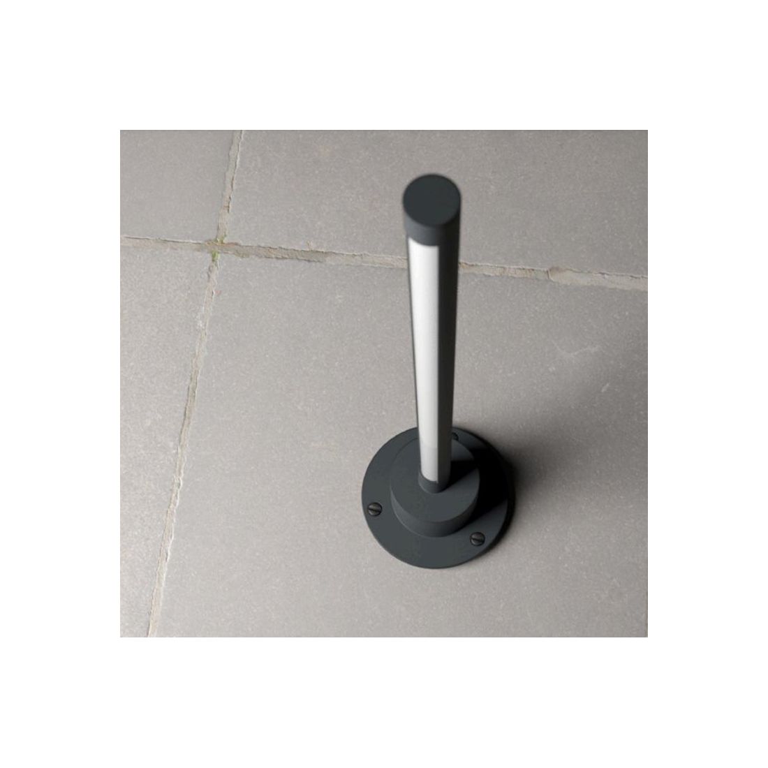 Paletto da esterni dal design essenziale e contemporaneo realizzato con una struttura sottile in alluminio verniciato nella tonalità Antracite e completato da un diffusore in policarbonato opale che diffonde una luce uniforme e piacevole senza abbagliare.