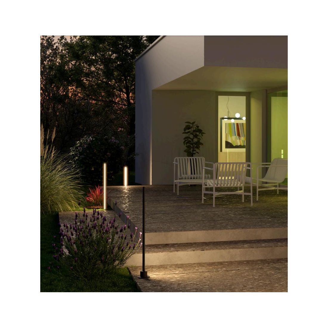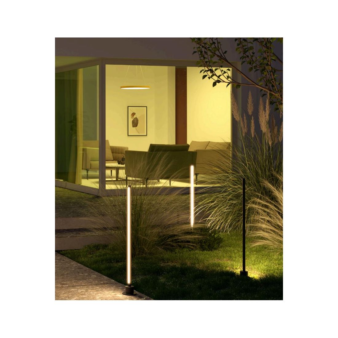 Il palo è disponibile in due versioni, con un’altezza di 50 cm o con altezza di 90 cm, per offrire soluzioni flessibili e personalizzabili. La versione da 50 cm integra una sorgente LED da 5W mentre quella da 90 cm è equipaggiata con una sorgente LED da 10W; entrambe le opzioni emettono una luce bianca calda (3000K) ideale per creare un’atmosfera accogliente e invitante negli spazi esterni.