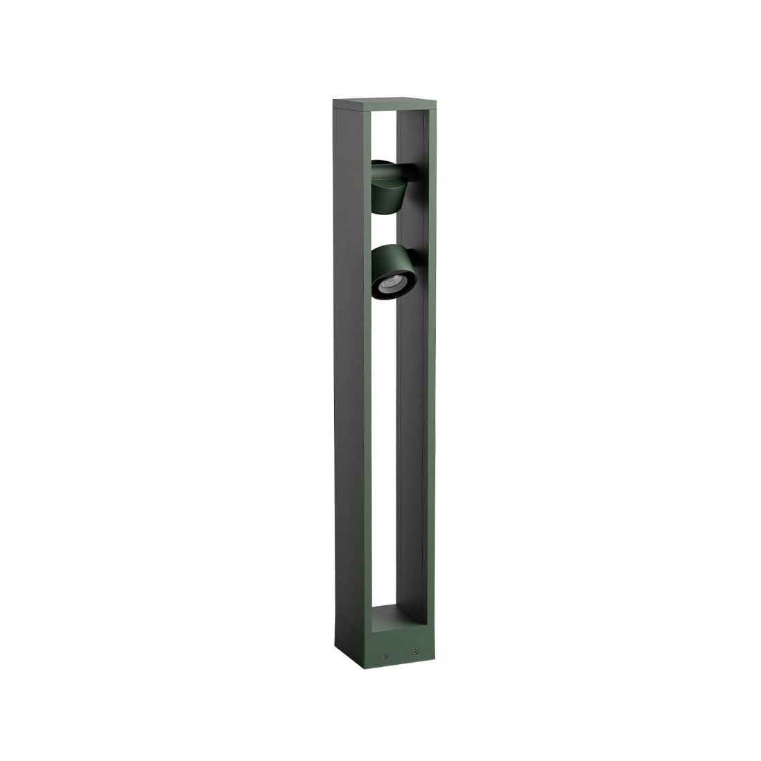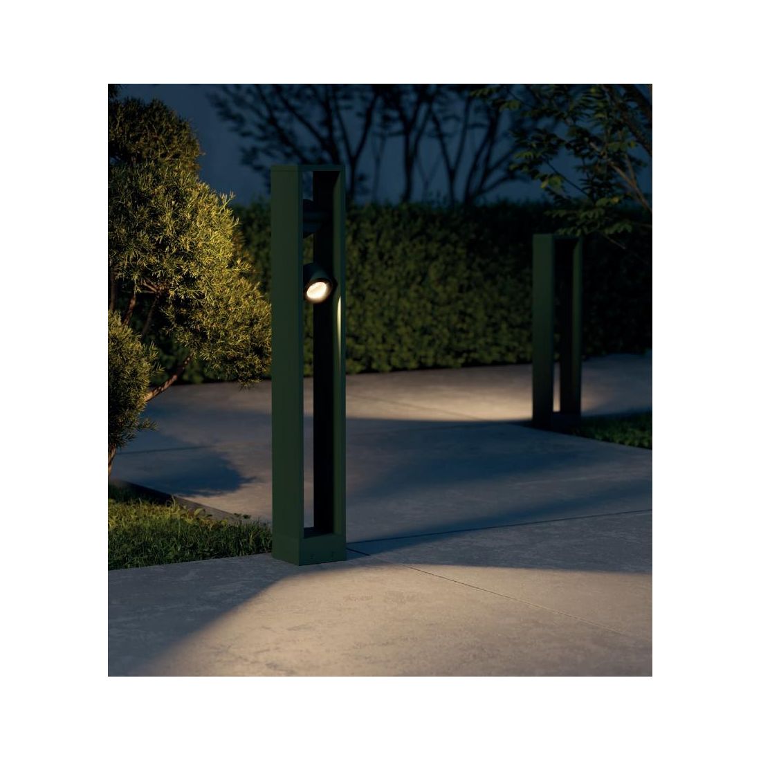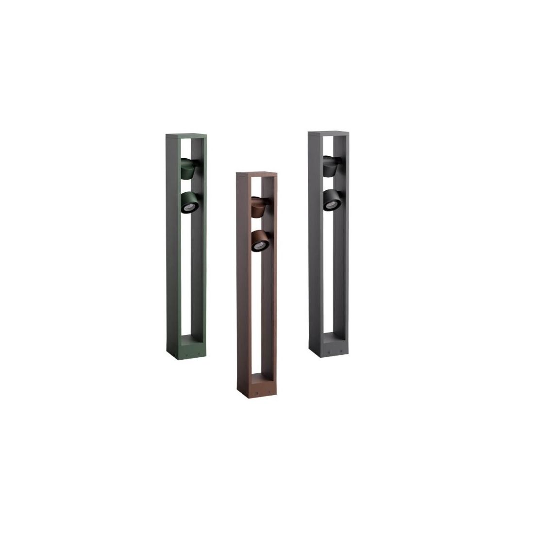 Palo da giardino dal design moderno, con un altezza di 80 cm, che si presente con la struttura realizzata in alluminio pressofuso, con trattamento protettivo antiruggine e anticorrosione mediante cataforesi, verniciato a polveri nei colori Antracite, Verde scuro oppure Corten con diffusore in vetro con bordo serigrafato nero, orientabile, che permette di direzionare il fascio luminoso esattamente dove richiesto per ottimizzare la funzionalità o esaltare dettagli architettonici e paesaggistici.
