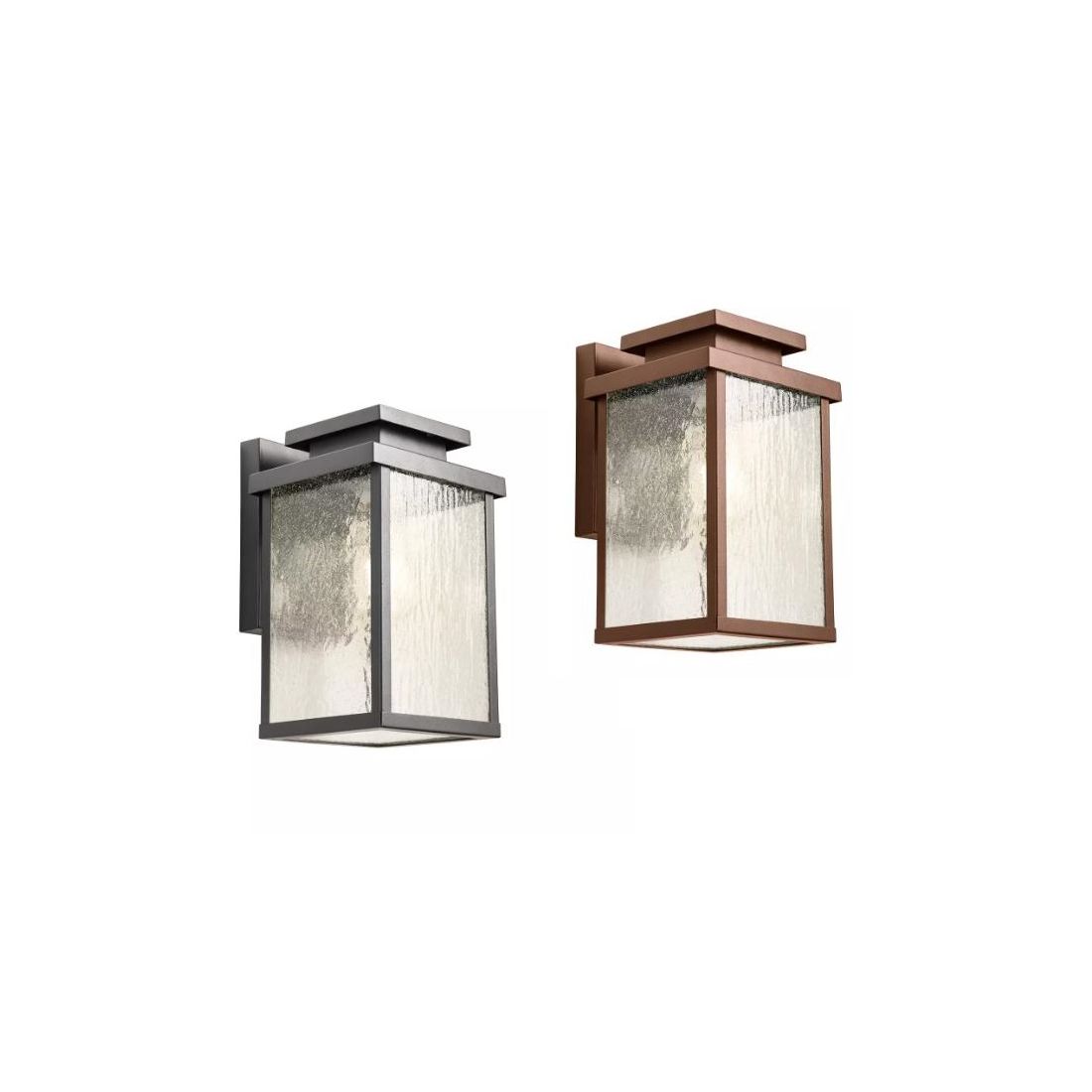 Lampada da parete ideata per ambienti esterni che viene realizzata in alluminio pressofuso verniciato a polvere disponibile nelle finiture Corten oppure Grigio (a vostra scelta) con quattro diffusori in vetro con effetto "waterglass" (vetro a effetto onda) che non solo protegge la fonte luminosa ma crea anche una diffusione della luce unica e vibrante aggiungendo profondità e movimento visivo.